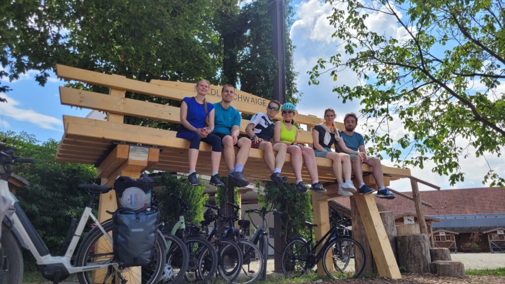 Also eigentlich wollten wir gar nicht so viel fahren aber da unsere Bike-Lodges (sowas cooles möchte ich für zu Hause auch haben) schon gebucht waren, war das Ziel Ingolstadt schon klar. Am Anfang vom Tag hiess es noch, wir hätten 90km vor uns. Es wurden dann aber doch noch 106km – ein paar Umleitungen und hin und her zum Einkaufen haben sich da zusammen gefunden.