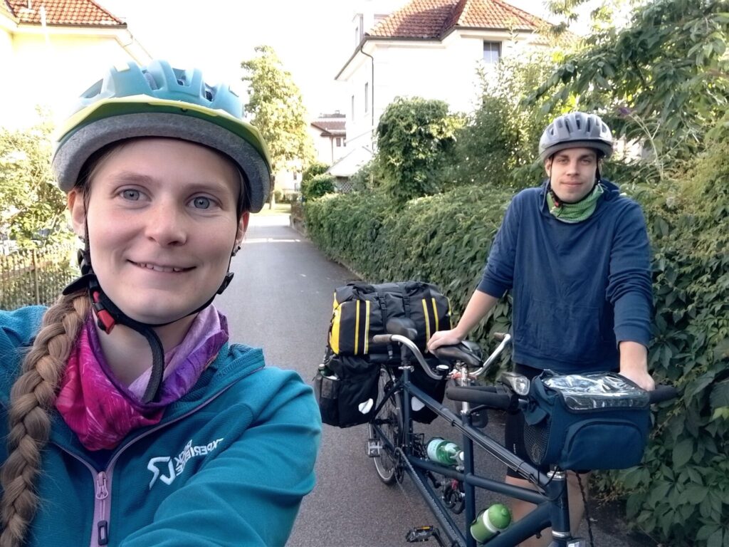 Heute Morgen ging es endlich los auf unsere Donau-Tandem-Tour. Gepackt haben wir tatsächlich etwas leichter als letztes Mal: Insgesamt mit uns und Tandem bewegen wir dann 208kg durch die Gegend.