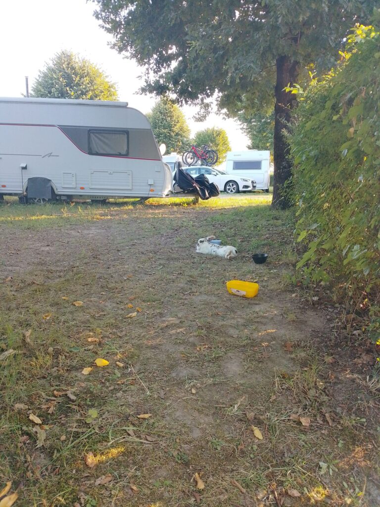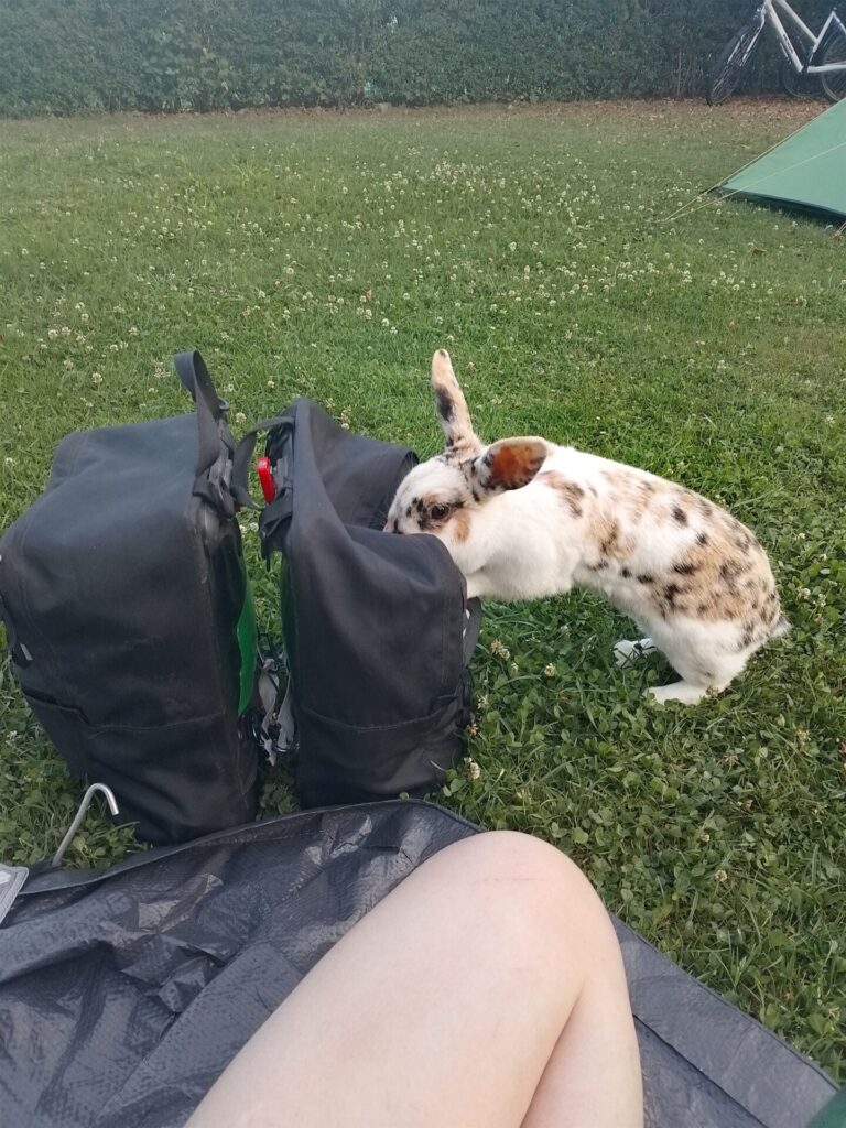 Nach dem Titel muss ja auch irgendwo hier im Blogbeitrag ein Hase auftauchen. Auf dem Campingplatz nicht mal 10 Meter von uns residierte einfach dieses Kaninchen, völlig frei und entspannt.
