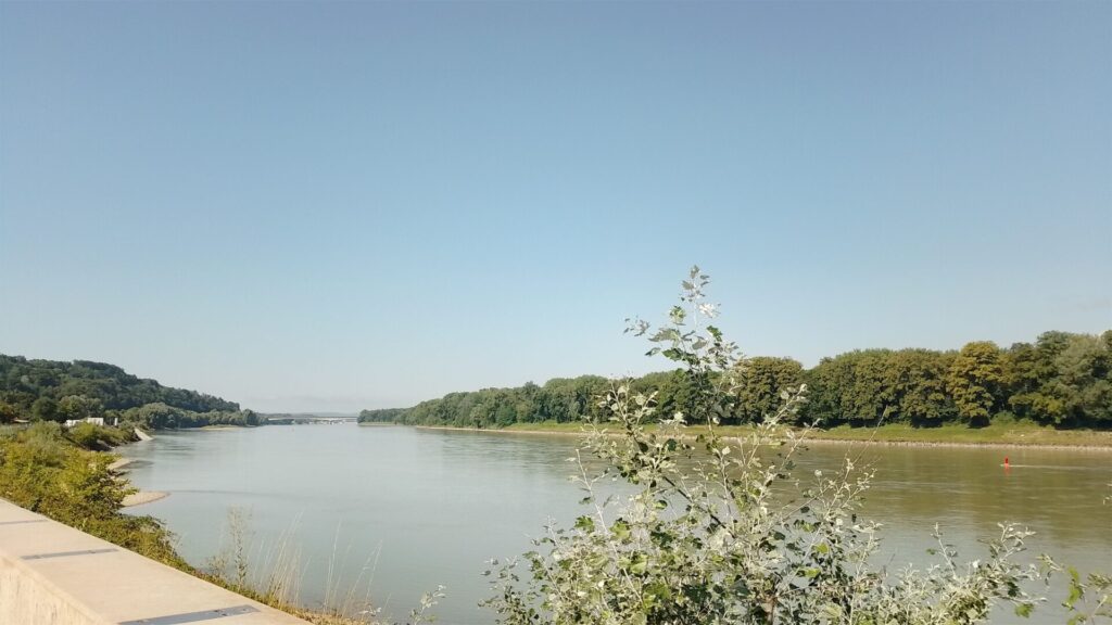 In Passau haben wir uns deswegen kurz noch eine neue Karte besorgt und schon ging es wieder weiter, jetzt Richtung Linz. Davor haben wir uns aber natürlich noch ein wenig in Passau umgeschaut. Besonders eindrucksvoll fanden wir dabei das Dreiflüsseeck. Donau, Inn und Ilz fliessen dort zusammen.