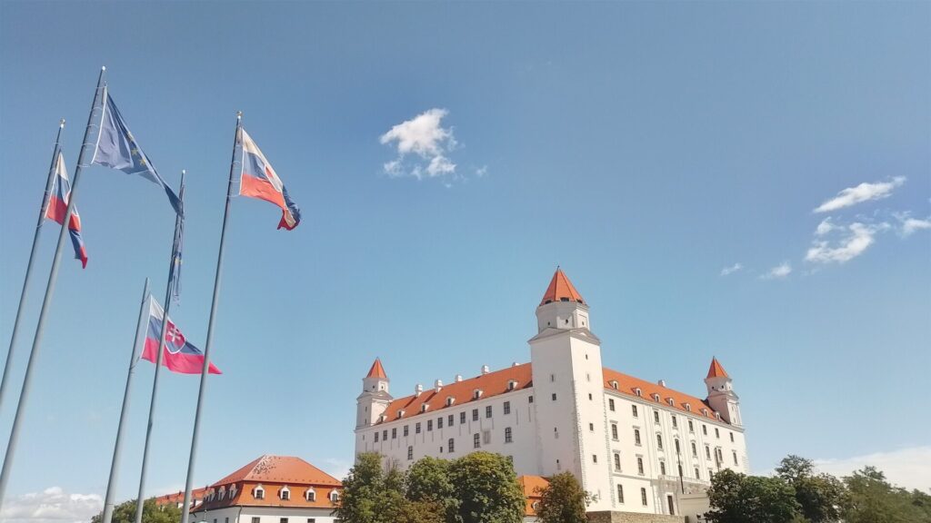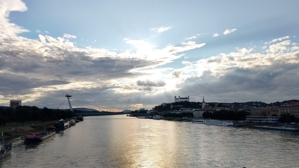 Nach einer kurzen Fahrt heute (nur 30km) sind wir in der Slowakei angekommen. Mit gemütlichem Tempo und entspannter Mittagspause in Hainburg direkt an der Donau im Schatten haben wir es durch die Hitze nach Bratislava geschafft. Die Burg und das Ufo waren schon von weitem zu sehen.