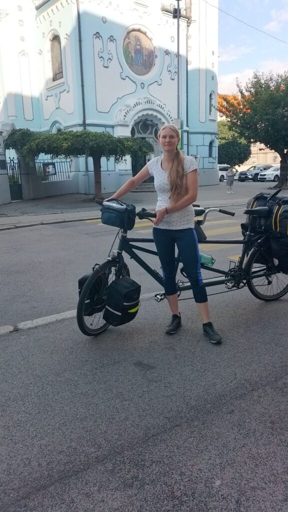 Unsere Routenkarte hat uns sehr empfohlen den Donaudurchbruch mit dem Schiff zu passieren. Das ist nicht gerade günstig und deshalb haben wir uns trotz der vielen Warnschilder über beträchtliche Steigung für den “Umweg” auf dem Tandem entschieden. Das war auch ganz in Ordnung, es hat sich nämlich herausgestellt, dass wir schon einiges an steilerer und längerer Steigung bewältigt haben. Das heute war zwar ein bisschen ein anstrengenderer Abschnitt aber die Warnungen finden wir etwas übertrieben.